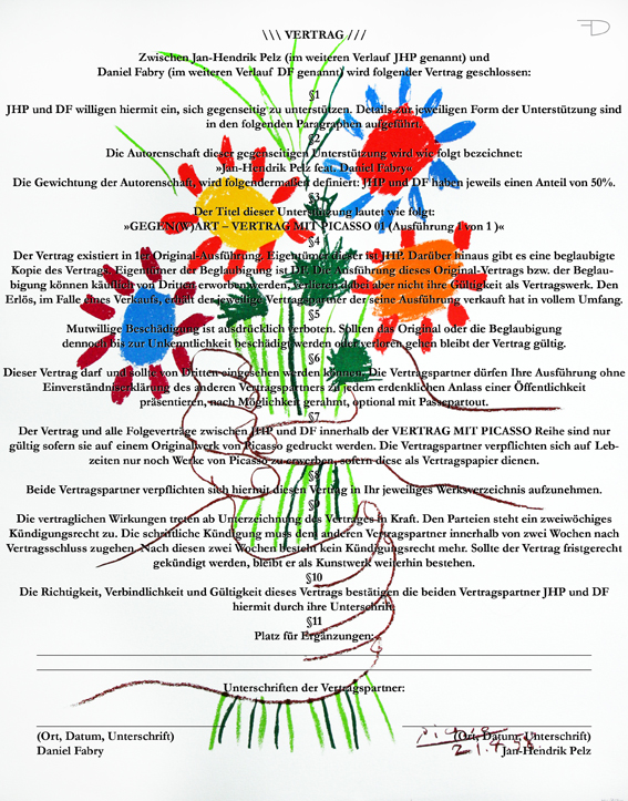 Die Künstler Jan-Hendrik Pelz und Daniel Fabry werden Vertrag auf Originalwerk von Picasso drucken.